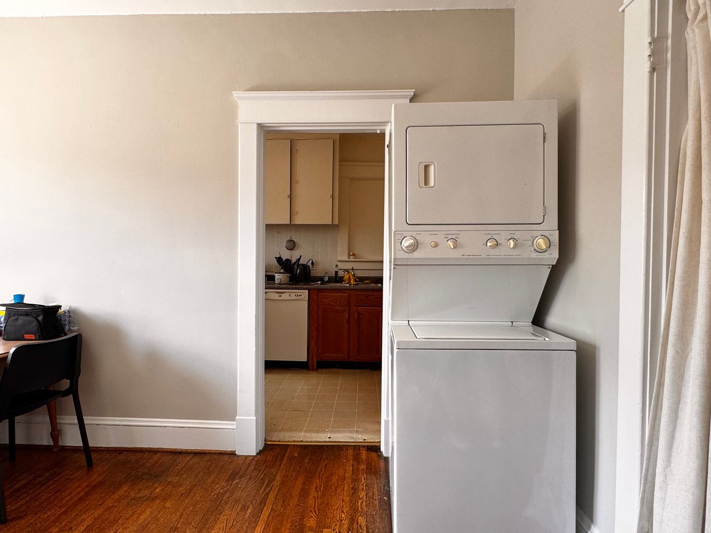 The kitchen has been updated with modern appliances including a dishwasher, and the home has its own washer and dryer for your convenience. Outside, enjoy the use of the yard and unwind on your front porch - perfect for those calm summer evenings. The stucco exterior further enhances this home's curb appeal. Heating is natural gas and window AC units for cooling. Two off-street parking spots are included with the property.