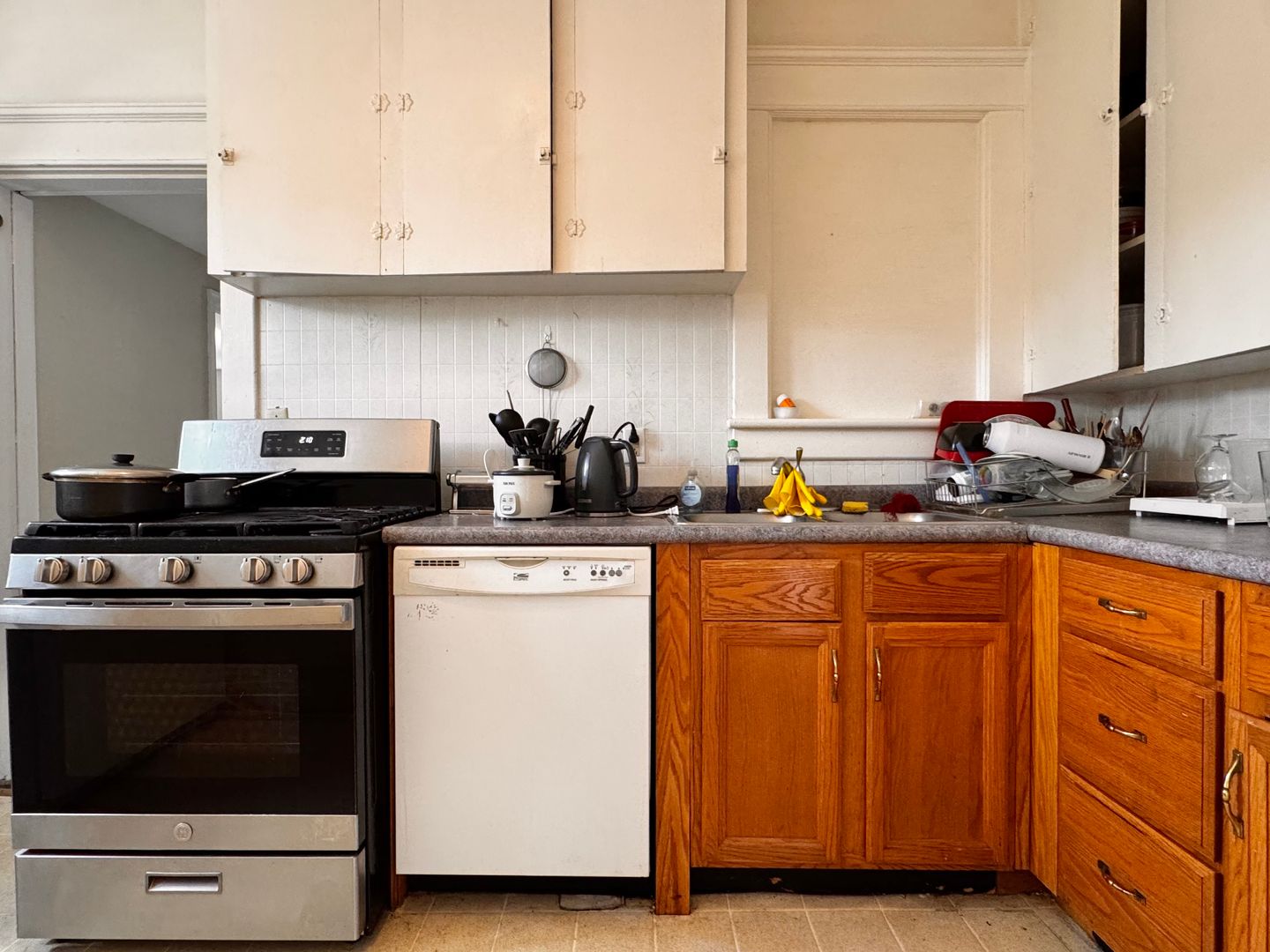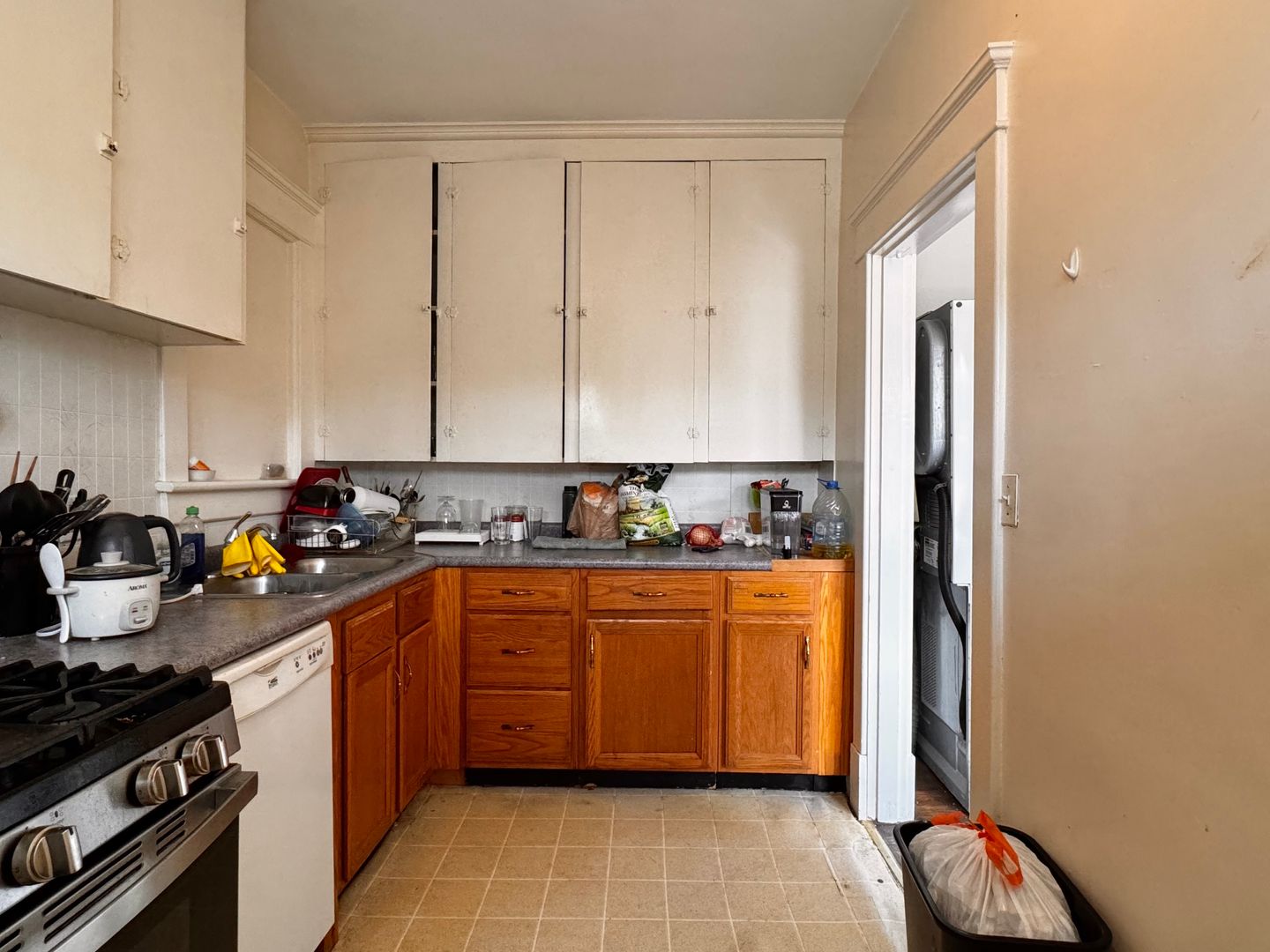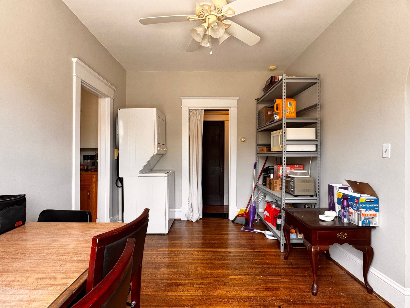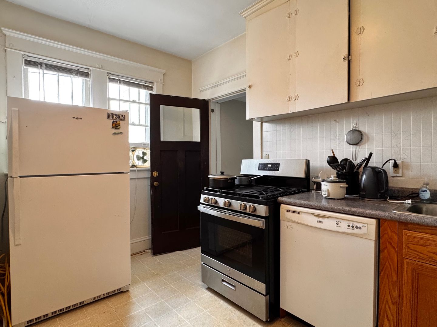 This unique property is a blend of vintage charm and modern amenities, offering a comfortable living space with a distinct character. This home boasts an impressive 1,281 square feet of living space spread across one convenient level. As part of a triplex building, this unit offers four bedrooms and two full bathrooms. The antique trim and features reflect its 1930's origins. The hardwood floors add warmth and living room is accentuated by a fireplace.